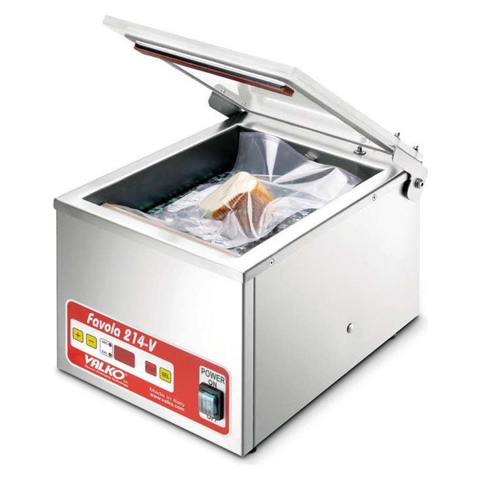 The Valko Favola 214 Compact countertop chamber vacuum packaging machine is perfect for packing larger and liquid items with ease. Its chamber design ensures efficient and secure vacuum sealing, even for more challenging products.