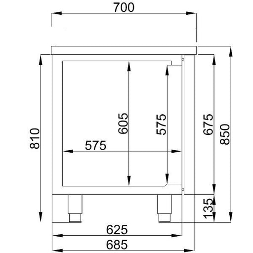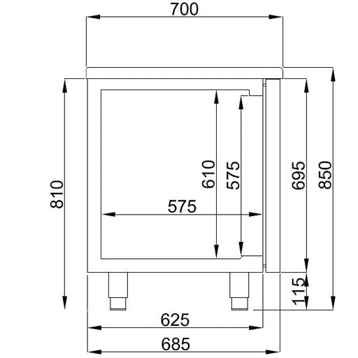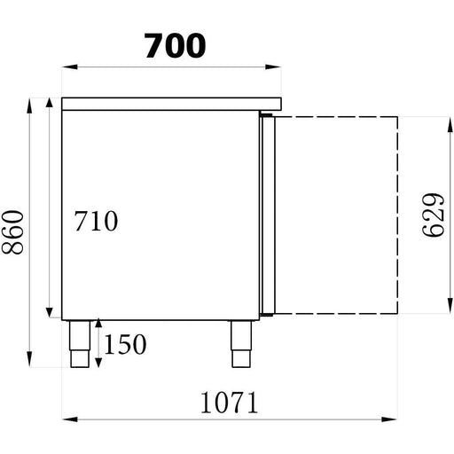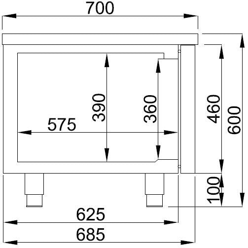 Combisteel€3,590.25| /Dimensions (mm): Height600Depth700Width 2130 Temperature range (°C)-2/+8 Delivery: 4 - 11 Working Days Specifications Dim. interior WxDxH (mm)1...