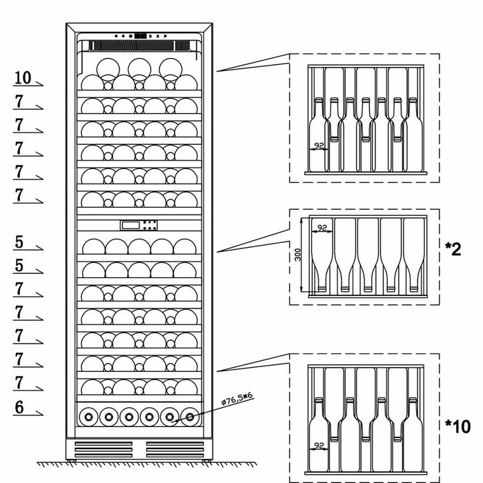 • Stores up to 96 Bordeaux type bottles.