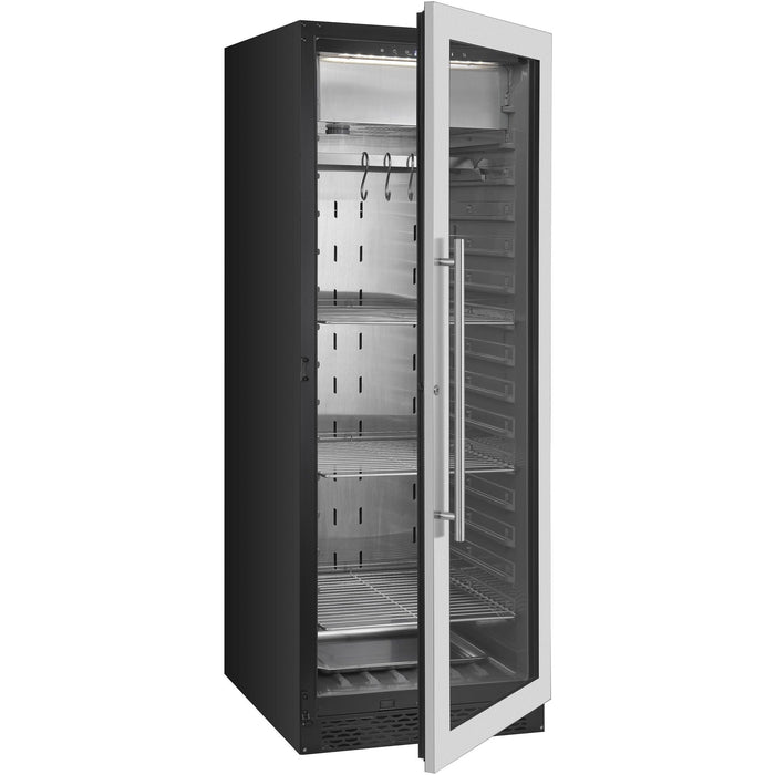 Mobile No Lockable Yes Type of cooling Ventilated Lighting Yes, LED Number of doors 1 Insulation thickness (mm) 55 Relative humidity (%) 60/85 Defrost Automatic Noise level (dB) 47 Door reversible Yes Display Yes, LCD Max. ambient temperature (°C) 43 Gross Capacity (Ltr) 388 Voltage (Volt) 230 Gross Weight (kg) 97 Color Black / Stainless steel Electrical power (kW) 0,17 Height (mm) 1720 Depth (mm) 710 Width (mm) 595 EAN code 7422242896853 Frequency (Hz) 50/60 Number of grids 3x 480x520mm Cooling agent R 600 A Temperature range (°C) 1/25