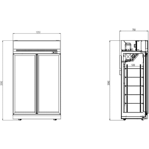 Combisteel FREEZER 2 GLASS DOORS BLACK 1230L