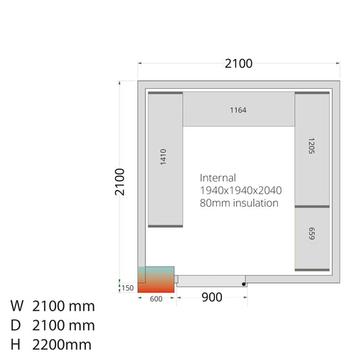 Tefcold€6,338.08| /Dimensions (mm): Height2200mmDepth2100mmWidth 2100mm Temperature range (°C) 0 to +8°C Delivery: Please contact us to confirm Product Features Fu...