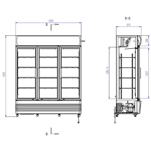 Combisteel€2,532.11| /Dimensions (mm): Height1973Depth610Width 1600 Temperature range (°C)+1/+10 Delivery: 4 - 11 Working Days Specifications MobileYesType of coolin...