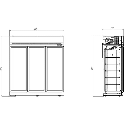 Tefcold FSC1600H Triple Door Display Fridge Glass