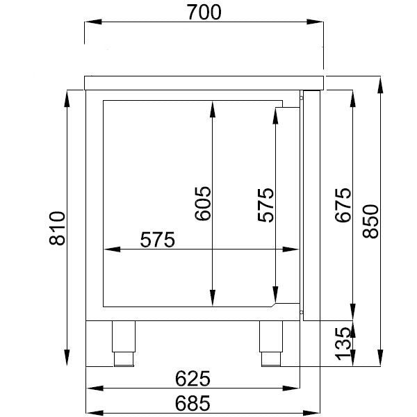 Type of cooling Ventilated Number of doors 3 Noise level (dB) 40 Defrost Automatic Max. ambient temperature (°C) 43 Insulation thickness (mm) 50 Contents of GN 1/1 Gross Capacity (Ltr) 474 EAN code 6017438853874 Type Pro Line Width (mm) 1865 Depth (mm) 700 Height (mm) 850 Material Stainless steel AISI 304 Gross Weight (kg) 170 Voltage (Volt) 230 Number of grids 3 Temperature range (°C) -2/+8 Cooling agent R 290 Electrical power (kW) 0,35 Frequency (Hz) 50/60