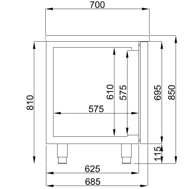 Type of cooling Ventilated Number of drawers 6 Noise level (dB) 40 Defrost Automatic Max. ambient temperature (°C) 43 Insulation thickness (mm) 60 Gross Capacity (Ltr) 474 EAN code 7435137843818 Type Pro Line Width (mm) 1785 Depth (mm) 700 Height (mm) 850 Material Stainless steel 430 Gross Weight (kg) 170 Voltage (Volt) 230 Temperature range (°C) -2/+8 Cooling agent R 290 Electrical power (kW) 0,2 Frequency (Hz) 50