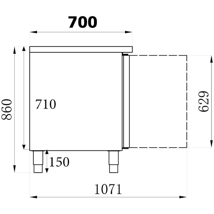 Dim. interior WxDxH (mm) 795x580x560 Sink dimensions wxdxh (mm) 400x400x200 Type of cooling Ventilated Number of doors 2 Noise level (dB) 50 Defrost Automatic Contents of GN 2x 1/1 EAN code 7435137891895 Type Standard Line Width (mm) 1510 Depth (mm) 700 Height (mm) 960 Material Stainless steel 18/8 Gross Weight (kg) 115 Material interior Stainless steel 201 Voltage (Volt) 230 Temperature range (°C) -2 / +8 Cooling agent R 600 A Electrical power (kW) 0.35 Frequency (Hz) 50