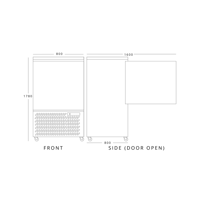 Featuring self-closing, right-hand hinged door, heavy duty castors as standard and a temperature probe and ability to accommodate GN1/1 gastronorm containers.