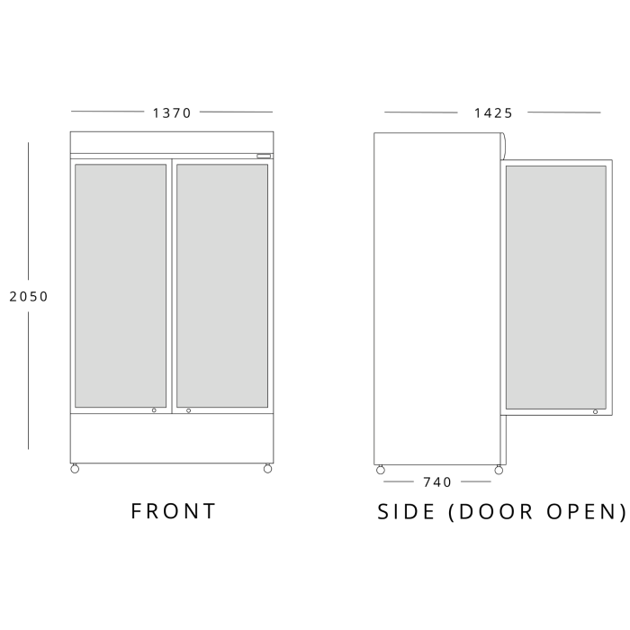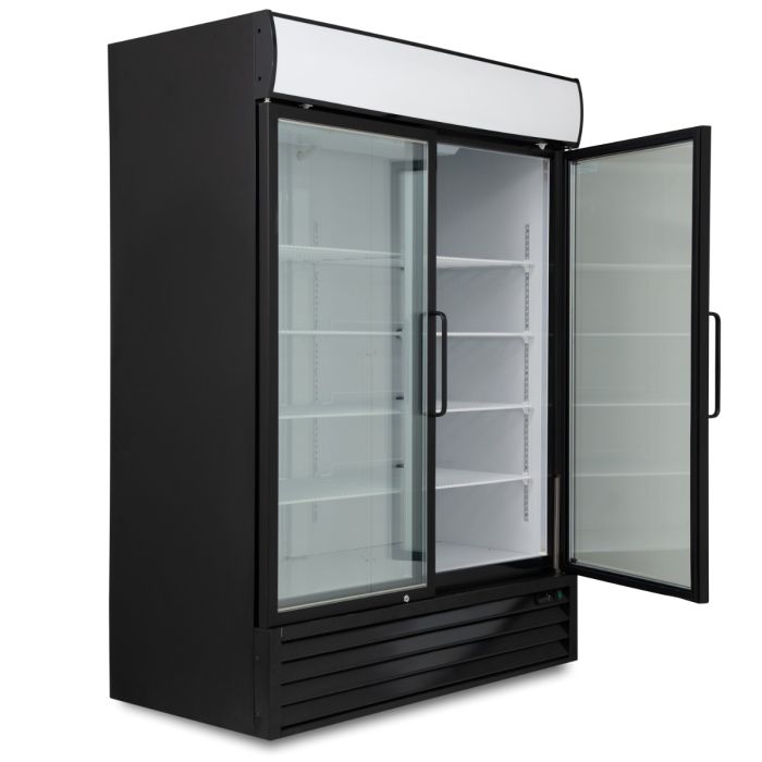 Featuring hinged doors and a black exterior, the GDF1200 is fronted with a black door embedded with triple glazed glass in order to optimise content viewing, along with integrated LEDs internally and customisable graphics panel above.