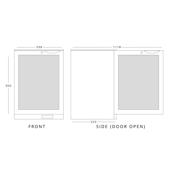 - Size (H x W x D) (mm): 900 x 598 x 520