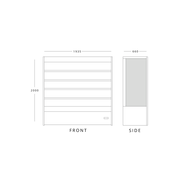 - Size (H x W x D) (mm): 2000 x 1935 x 660
