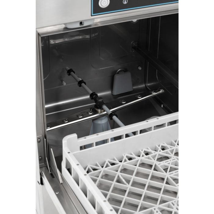 Offering outstanding features such as a double skinned door for quieter running, automatic detergent and rinse aid dosing and of course the 2 glass baskets supplied as standard. The STORM50DP comes fitted with an integral drain pump to further ease the use of the unit.