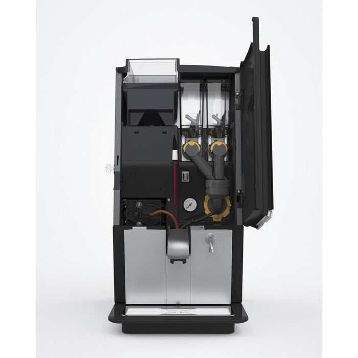 The Esprecious 12 features a single canister for coffee beans and two separate canisters for instant ingredients.