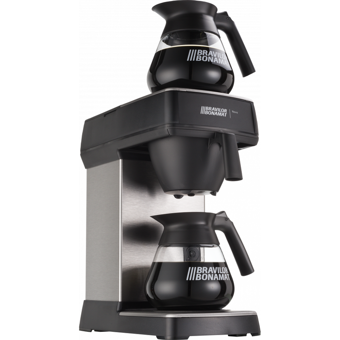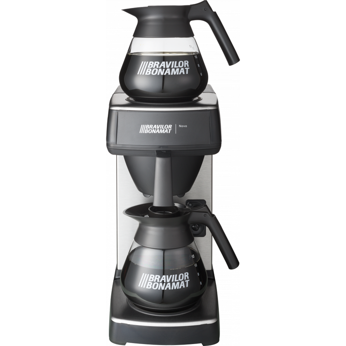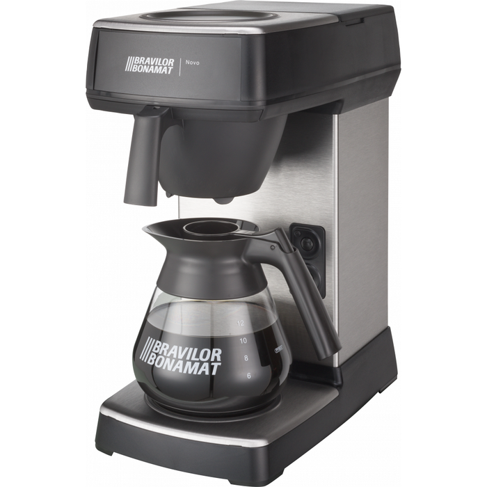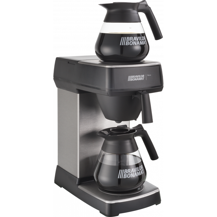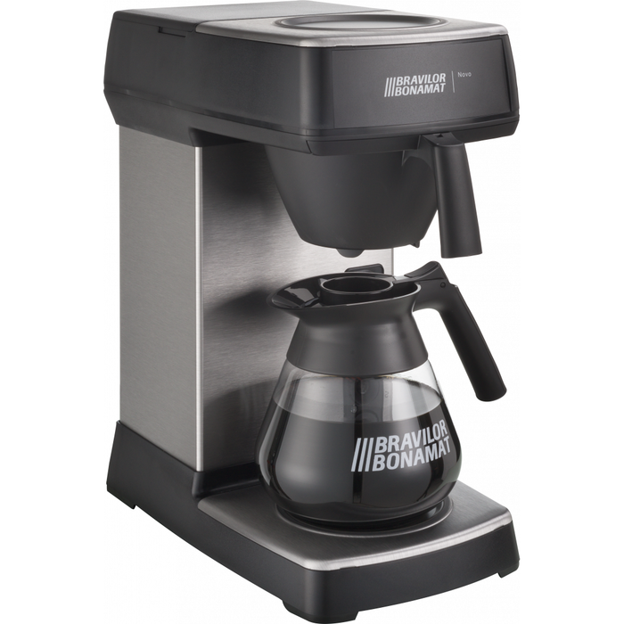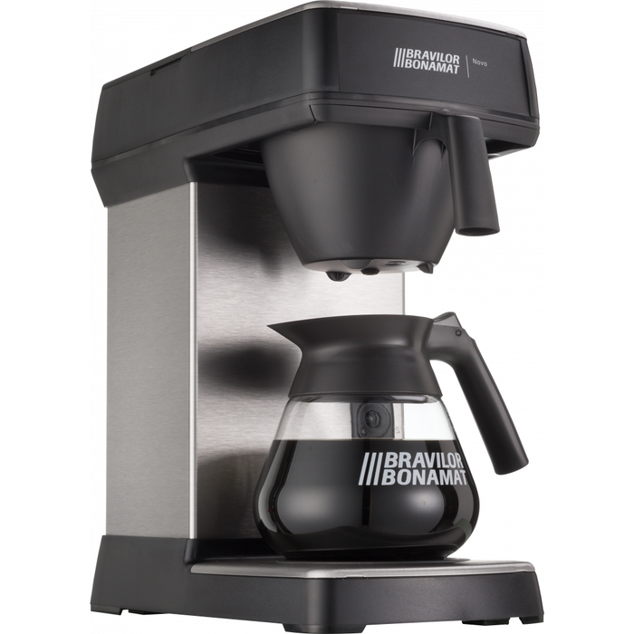 The Novo machine is a compact quick filter machine designed for areas without a water connection. It comes with a 1.7-litre glass decanter.