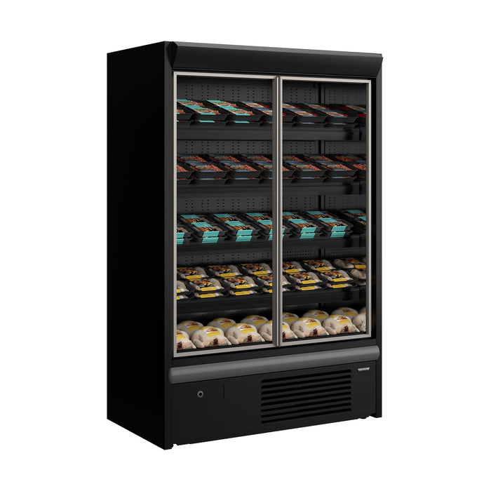 The popular Capital Cooling Multideck Galaxy FGD with glass doors is now available from TEFCOLD. The new FGD variant comes with full glass doors that are double glazed for excellent energy efficiency, while helping to keep produce in the optimum condition. Vertical LED lights run down the inside of each end wall, which combined with horizontal LED lighting across the top gives excellent illumination and visibility inside the cabinet. The units come with 39mm EPOS ticket strips together with shelf risers as standard. Shelves can be angled at 10 or 20 degrees to give more options for merchandising and creating an attractive display for your customers.