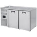 Dim. interior WxDxH (mm) 990x565x795 Grid(s) size WxD (mm) 540x405 Sink dimensions wxdxh (mm) 300x500 Number of doors 2 Defrost Automatic Max. ambient temperature (°C) 43 Insulation thickness (mm) 60 EAN code 7435137841883 Width (mm) 1550 Depth (mm) 700 Height (mm) 950 Material Stainless steel 430 Gross Weight (kg) 200 Particulars Space for 1 beer keg per door when you take out the shelves Voltage (Volt) 230 Number of grids 2 Temperature range (°C) -2/+8 Cooling agent R 290 Electrical power (kW) 0.36 Frequency (Hz) 50
