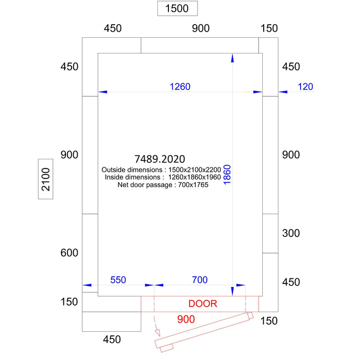 Dimensions (mm): Height 2200 Depth 2100 Width 1500