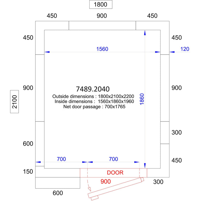 Dimensions (mm): Height 2200 Depth 2100 Width 1800