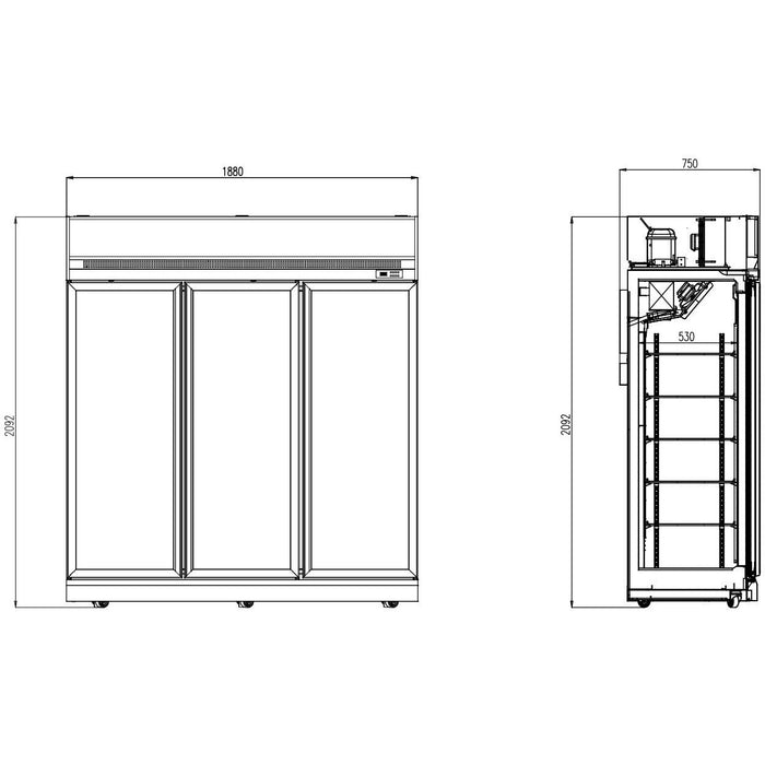 CombiSteel FREEZER 3 GLASS DOORS BLACK INS-1530F BL