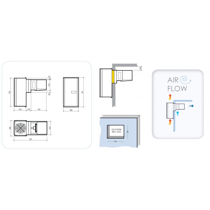 Introducing the POSITIVE WALL-MOUNTED UNIT 2.8-5.8 M3 SMALL, the ultimate monoblock solution for efficient coldroom cooling. Designed for compact spaces, this wall-mounted unit delivers reliable performance, maintaining optimal temperatures with precision.
