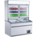 Mobile No Lockable No Type of cooling Ventilated Lighting Yes, LED Number of doors 2 Insulation thickness (mm) 60 Power consumption (Kw/24h) bottom 8,4 / top 5,28 Defrost Automatic Noise level (dB) 55+60 Max. ambient temperature (°C) 25 Gross Capacity (Ltr) 368 top / 530 bottom Voltage (Volt) 230 Particulars Top ventilated cooling / Bottom static cooling Gross Weight (kg) 257 Color White Electrical power (kW) 0,91 Height (mm) 2000 Depth (mm) 890 Width (mm) 1454 EAN code 7435137868873 Number of grids 4 Max. grid load (kg) 18 Guides distance (mm) 90 Cooling agent R 290 Number of dividers 2 Temperature range (°C) 0/+10, <-18