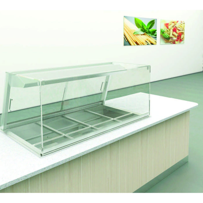 The Mall Drop-In Heated Displays are equipped with fan-assisted heating and humidity control, featuring automatic water fill to maintain optimal product quality.