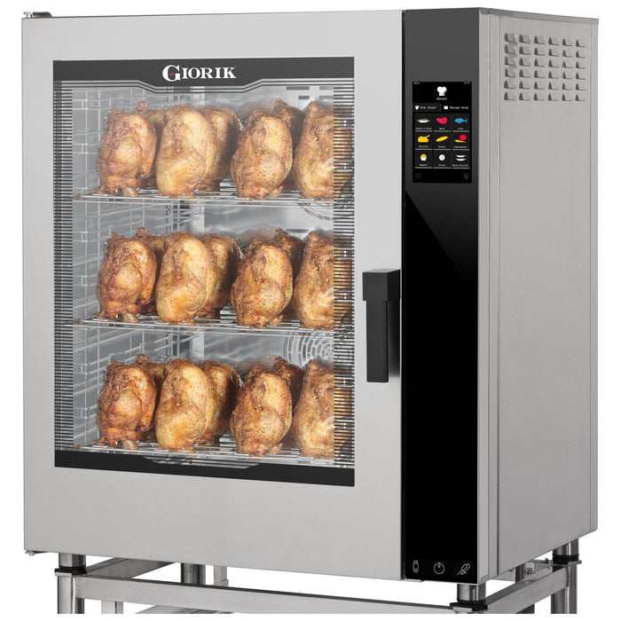 The Giorik Movair MTG10 is a medium-use, 10-rack gas combination oven, perfect for smaller operators seeking a compact oven with the features of larger, heavy-duty models.