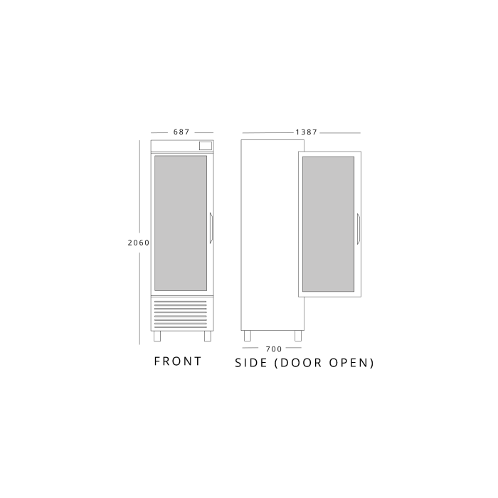 - Size (H x W x D) (mm): 2060 x 1385 x 700