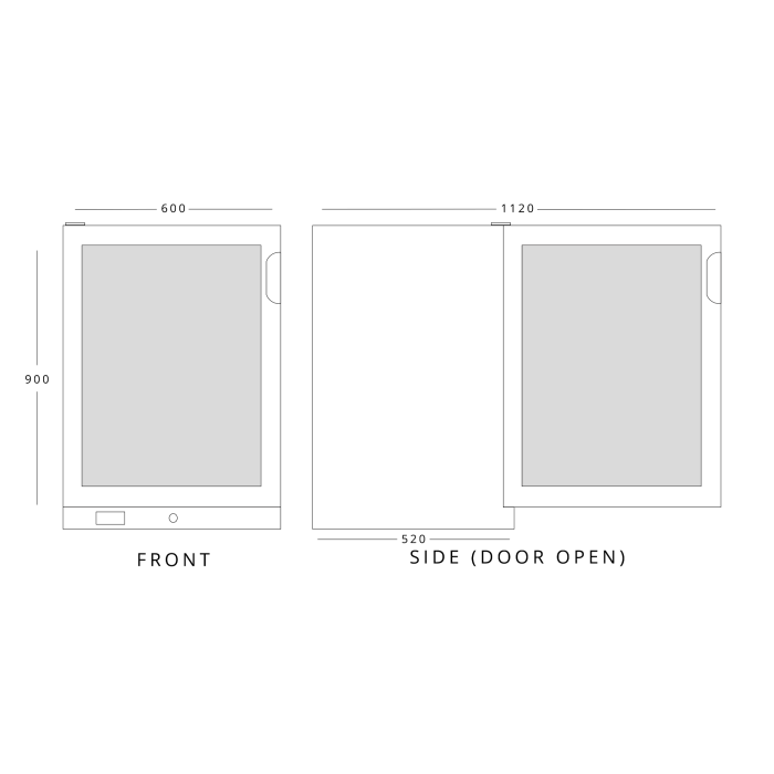 - Size (H x W x D) (mm): 900 x 600 x 520