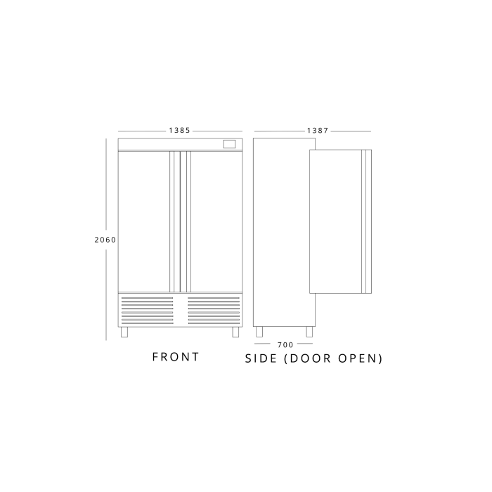- Size (H x W x D) (mm): 2060 x 687 x 700