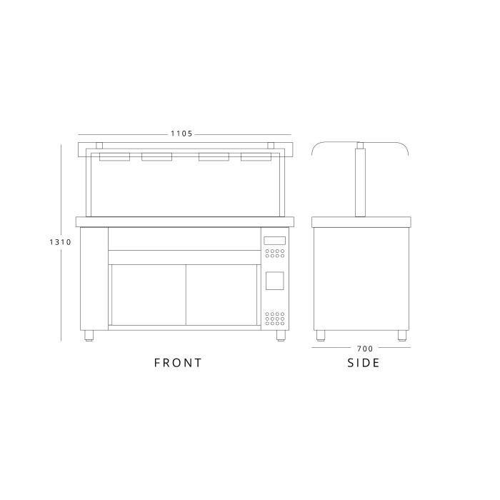 - Wet well accepts GN1/1 upto 150mm deep (not supplied)