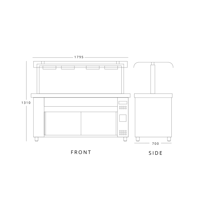 The MRV718 is perfect for a buffet style self-service, the double sneeze guard adds some health and safety measures, while allowing access from both sides of the unit.
