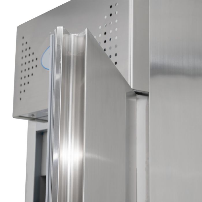 Self-closing doors with dwell position, 3 adjustable shelves per door, 60mm thick insulation, led lighting and more all contribute to this amazing