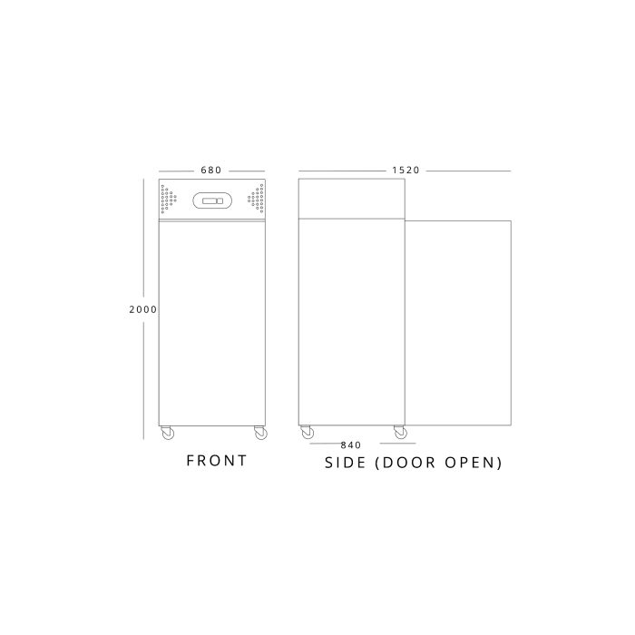 Size (H x W x D) (mm): 2000 x 680 x 840