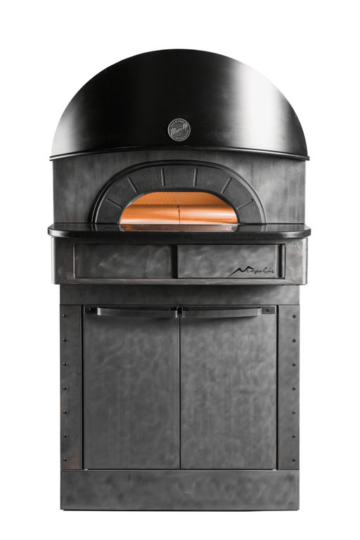 Finished in vintage industrial-style stainless steel, with a heavy cast iron door and black steel hood, it combines both style and performance. Equipped with advanced electronic temperature controls, the oven ensures consistent cooking results at high volumes. The refractory floor and ceramic inner walls retain heat for even, rapid cooking, and the oven is versatile enough to cook a wide range of foods, not just pizza.