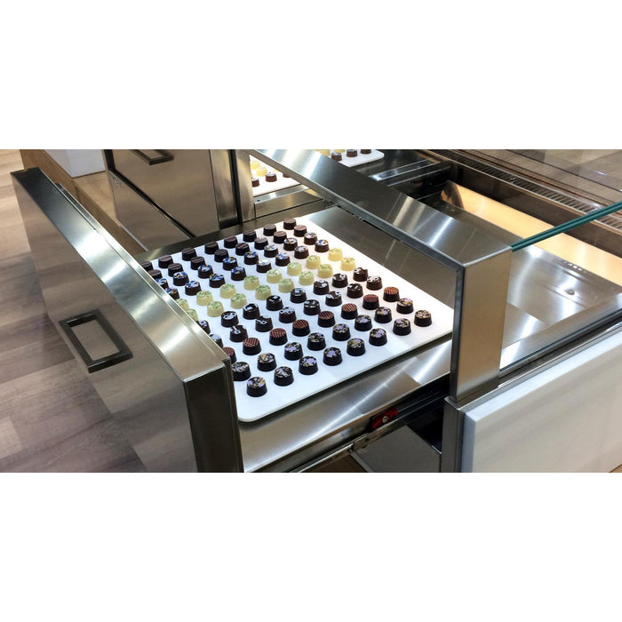 Emainox Pastry Displays feature a low-level cube glass design, providing excellent product visibility and eye-level contact with customers.