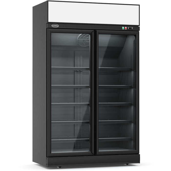 Mobile Yes Lockable No Type of cooling Ventilated Lighting Yes, LED Number of doors 2 Dim. interior WxDxH (mm) 1163x545x1569 Dimensions light box WxH (mm) 1253x280 Insulation thickness (mm) 45 Power consumption (Kw/24h) 5,20 Net Capacity (Ltr) 1000 Defrost Automatic Noise level (dB) 60 Max. ambient temperature (°C) 38 Voltage (Volt) 230 Net weight(kg) 172 Gross Weight (kg) 202 Accessories included 4 castors and 10 grids with clips and price card holders Color Black Electrical power (kW) 0,48 Height (mm) 2092 Depth (mm) 710 Width (mm) 1253 EAN code 7435137868804 Number of grids 10 Max. grid load (kg) 30 Guides distance (mm) 90 Number of guide pairs 3 per door Cooling agent R 290 Temperature range (°C) 0/+10
