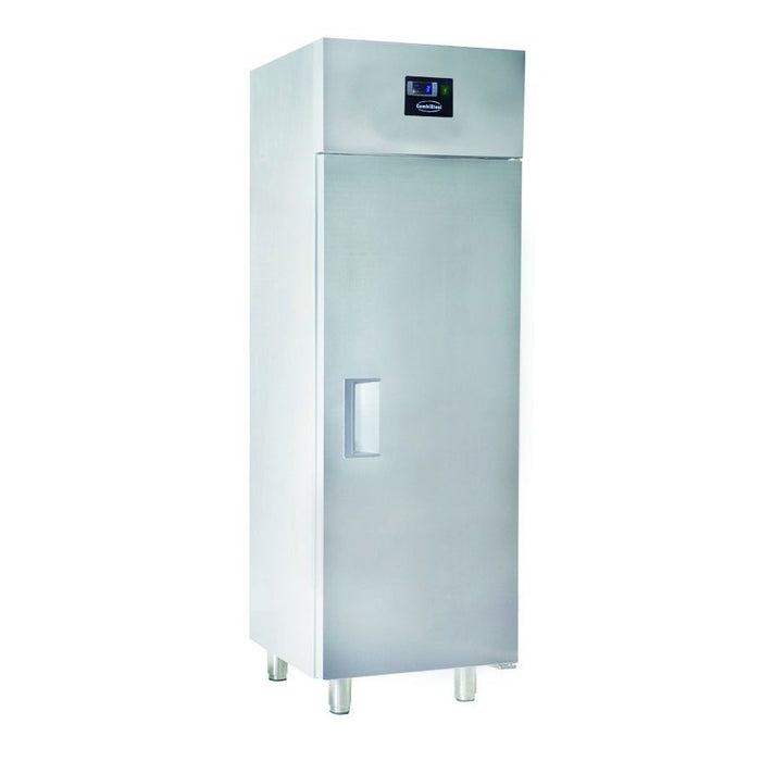 Lockable Yes Type of cooling Ventilated Number of doors 1 Grid(s) size WxD (mm) 460x485 Insulation thickness (mm) 50 Defrost Automatic Noise level (dB) 43 Max. ambient temperature (°C) 32 Gross Capacity (Ltr) 400 Voltage (Volt) 230 Gross Weight (kg) 100 Color Stainless steel Material Stainless steel 430 Electrical power (kW) 0,13 Height (mm) 1950 Depth (mm) 600 Width (mm) 600 Type Pro Line EAN code 6017436086090 Frequency (Hz) 50/60 Number of grids 3 Guides distance (mm) 25 Number of guide pairs 20 Cooling agent R 290 Temperature range (°C) -2/+8