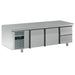 The worktop can be customized to suit the appliances being used. The counter is designed to accommodate 1/1 GN-sized containers, providing efficient storage and organization in the kitchen.