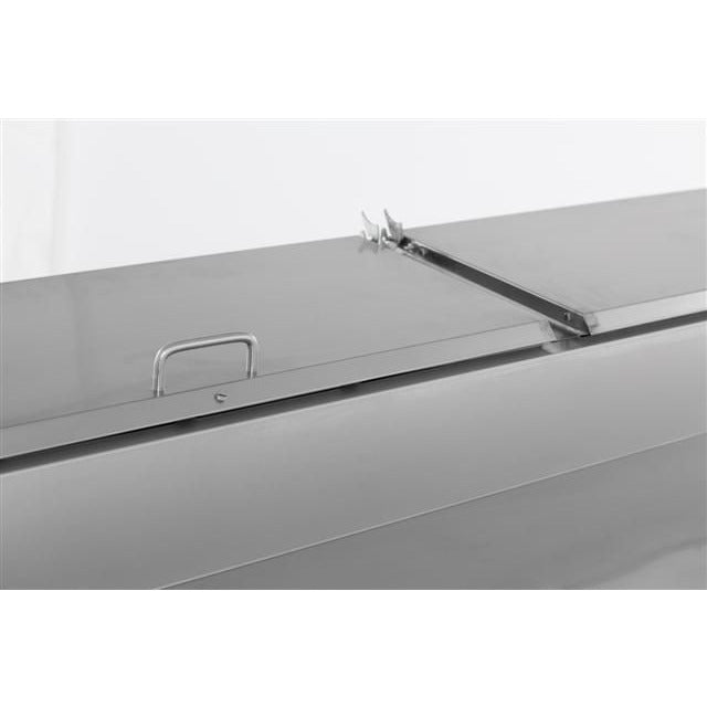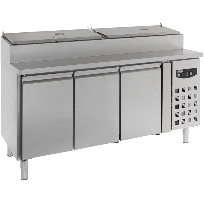 Dim. interior WxDxH (mm) 1230X580X560 Max. depth GN container (mm) 150 Type of cooling Ventilated Number of doors 3 Noise level (dB) 42 Defrost Automatic Max. ambient temperature (°C) 38 Insulation thickness (mm) 60 Contents of GN 3x 1/1 GN, 8x 1/3 GN PAN EAN code 7435137814887 Type Standard Line Width (mm) 1795 Depth (mm) 700 Height (mm) 1085 Material Stainless steel 18/8 Gross Weight (kg) 180 Material interior Stainless steel 201 Voltage (Volt) 230 Number of grids 3 Temperature range (°C) +2 / +8 Cooling agent R 600 A Electrical power (kW) 0.34