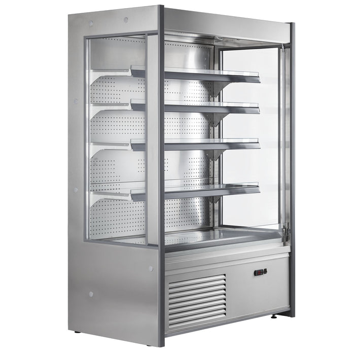 The Tefcold Express Stainless range is a quality refrigerated multideck combining power and efficiency, finished in high quality catering grade brushed stainless steel with glass end-walls. The unit has excellent internal illumination with LED lighting vertically on both sides as well as horizontally across the top. The unit comes supplied as standard with stainless steel shelves that can be tilted to 10 or 20 degrees together with ticket strips and shelf risers provided. Great for display of soft drinks, dairy, sandwiches and packed fresh meat, this product is ideal for supermarkets where plug-in refrigeration is required, convenience stores, food to go, delis, sandwich shops and butchers etc.