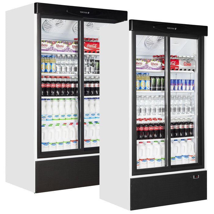 The TECOLD FS1002S & FS1202S are a range of sliding glass door merchandisers. without a light canopy they maximise the display space allowing higher glass doors. They are versatile units suitable for drinks, dairy (milk, cheese etc) and sandwiches. Fan assisted cooling, vertical interior lights and self closing doors make it ideal for supermarkets, convenience stores, shops and cafes.